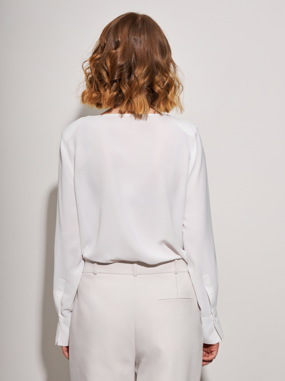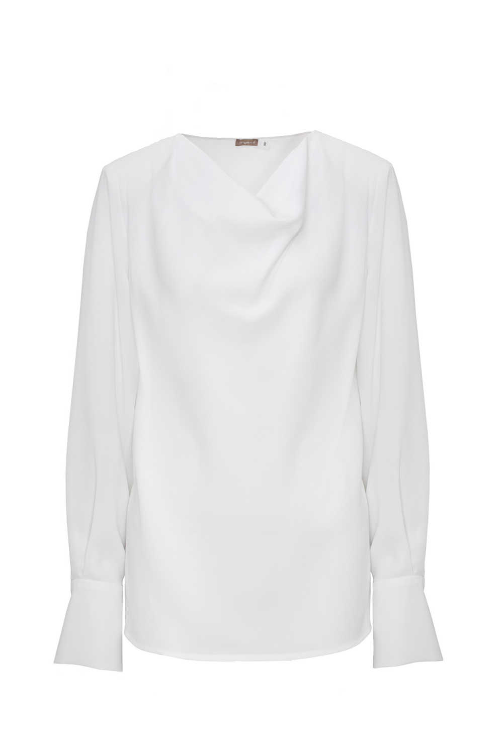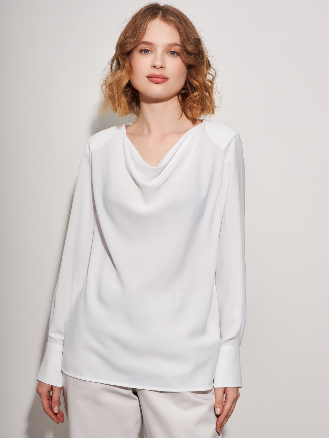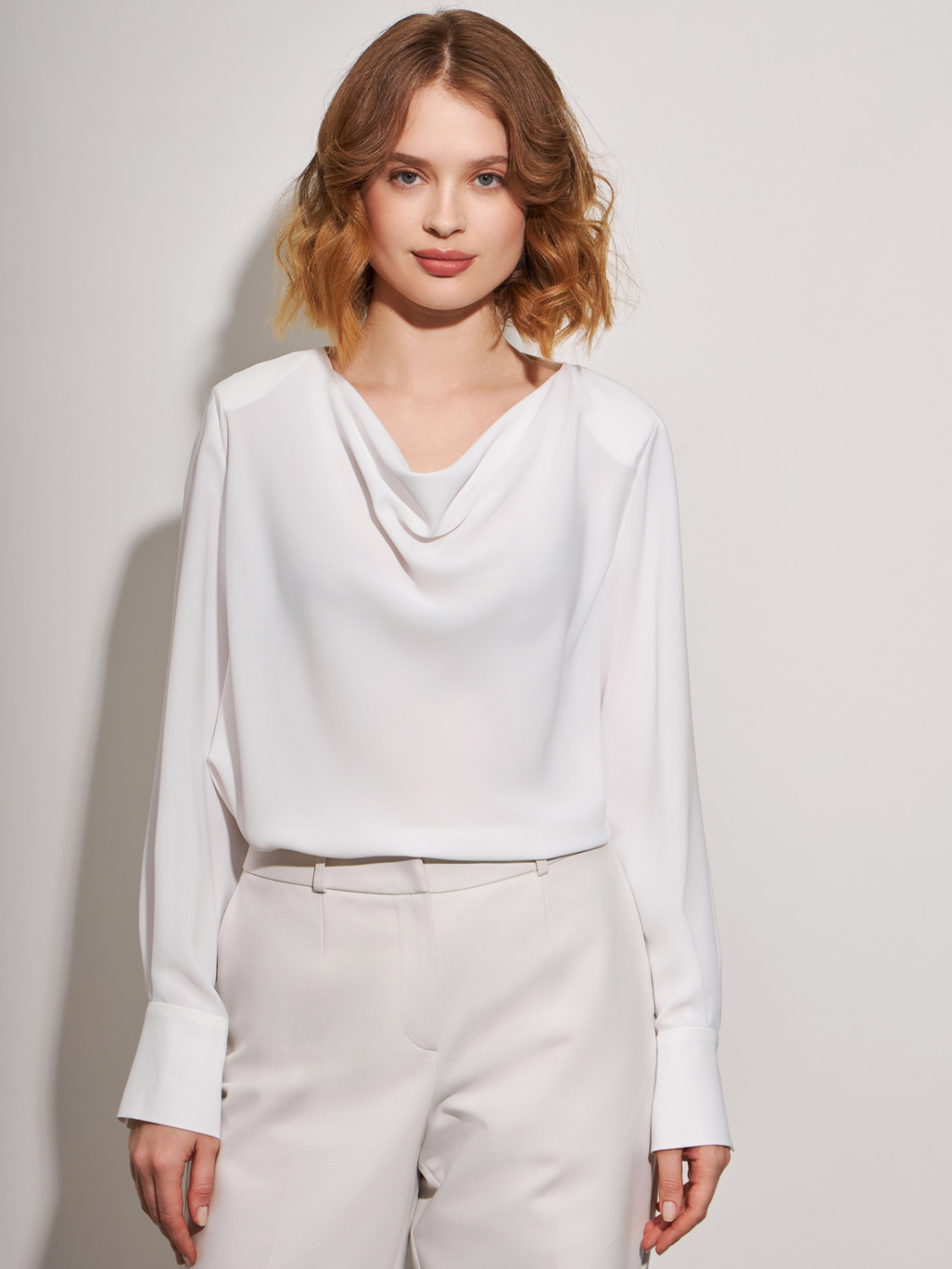 Эффектная белая блуза, с вырезом - качели, самый популярный тренд этого сезона.