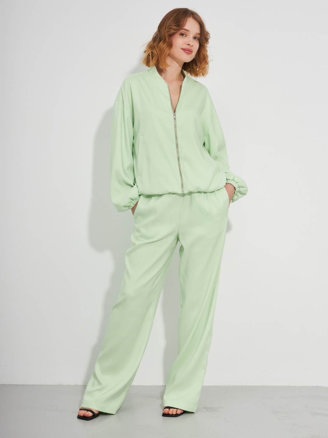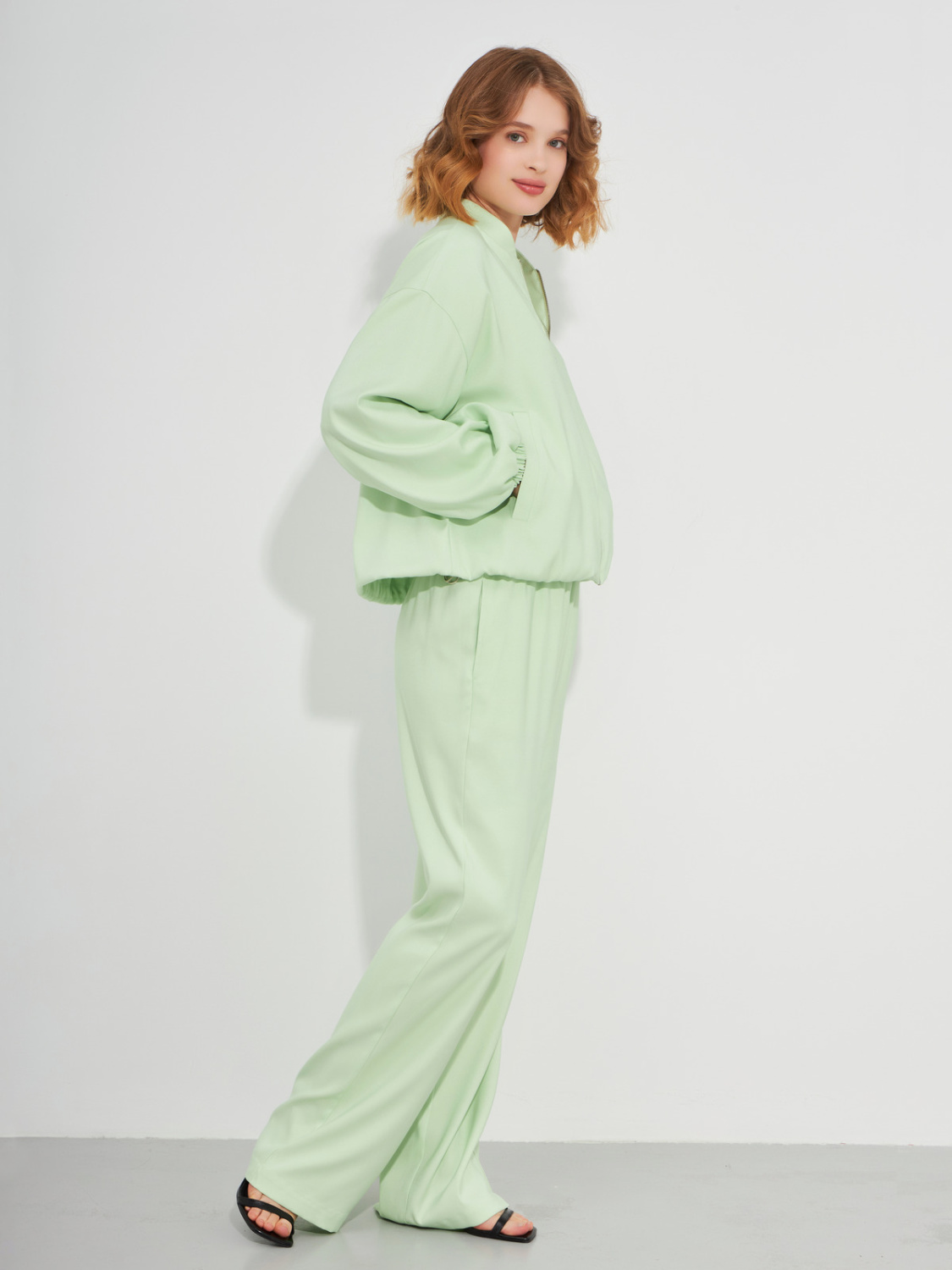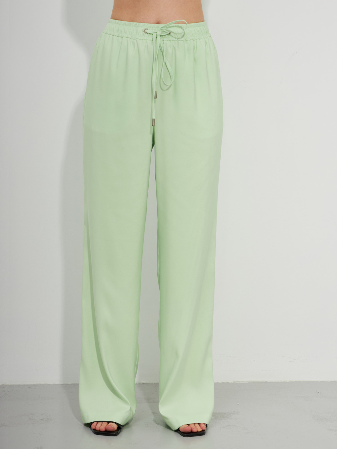 Прямые брюки с резинкой на талии салатового цвета