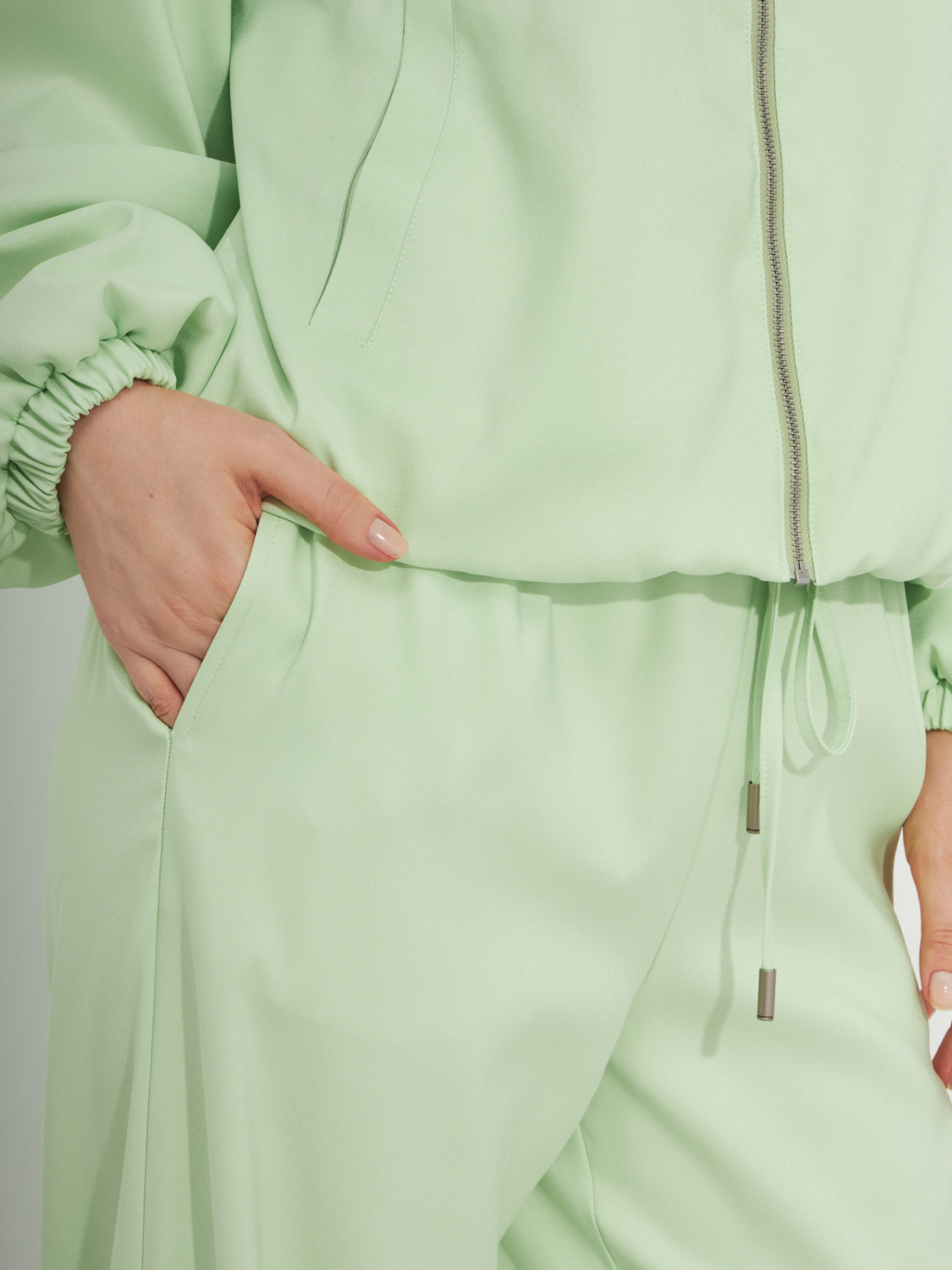 Салатовые  брюки прямого силуэта - модель, которую легко встроить и в формальный образ, и в расслабленный casual. Струящаяся ткань приятна к телу и обладает отличной износостойкостью. Эластичный пояс с регулировкой подчеркнет талию и сделает образ более расслабленным.