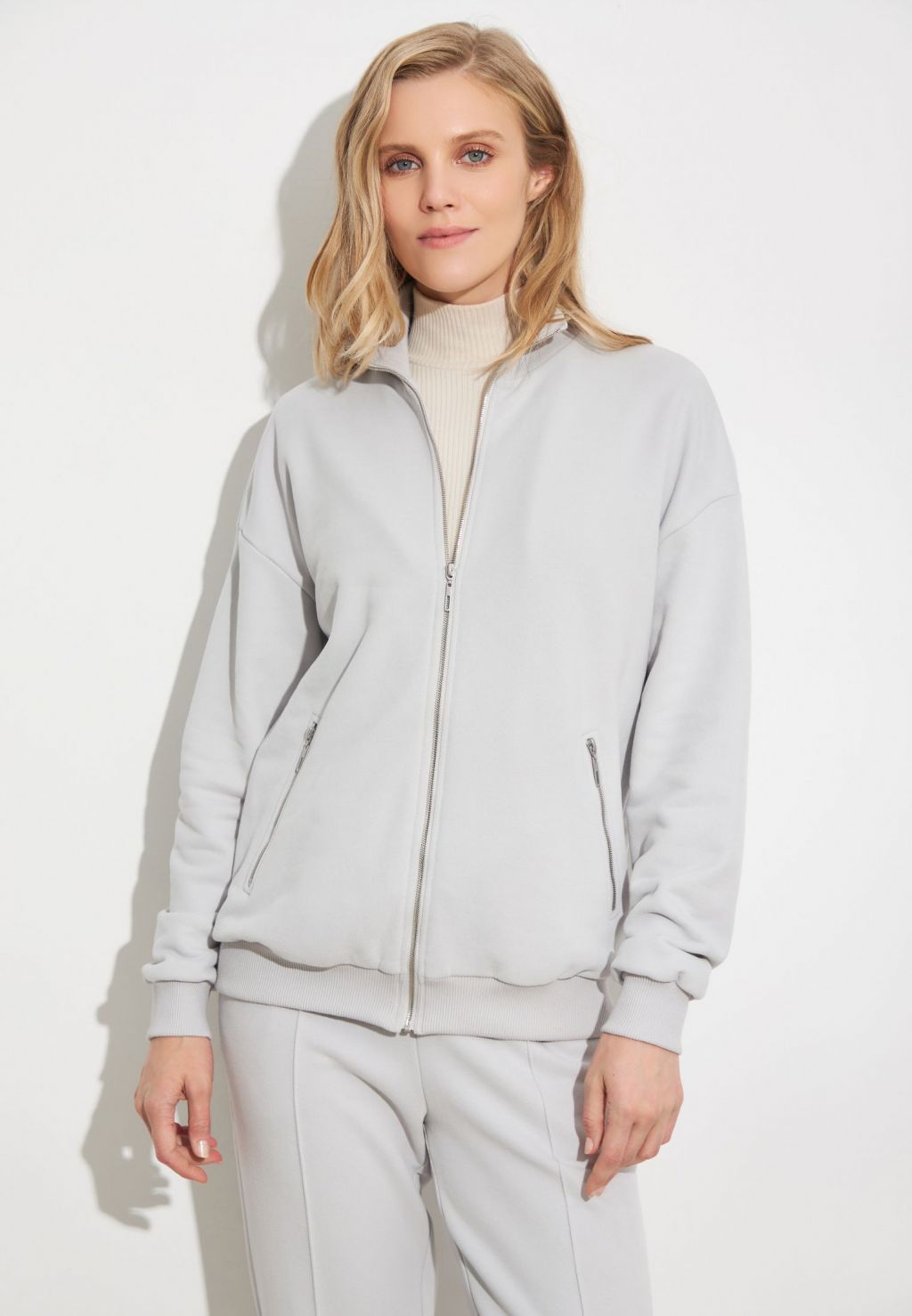 Светло-серый бомбер из футера