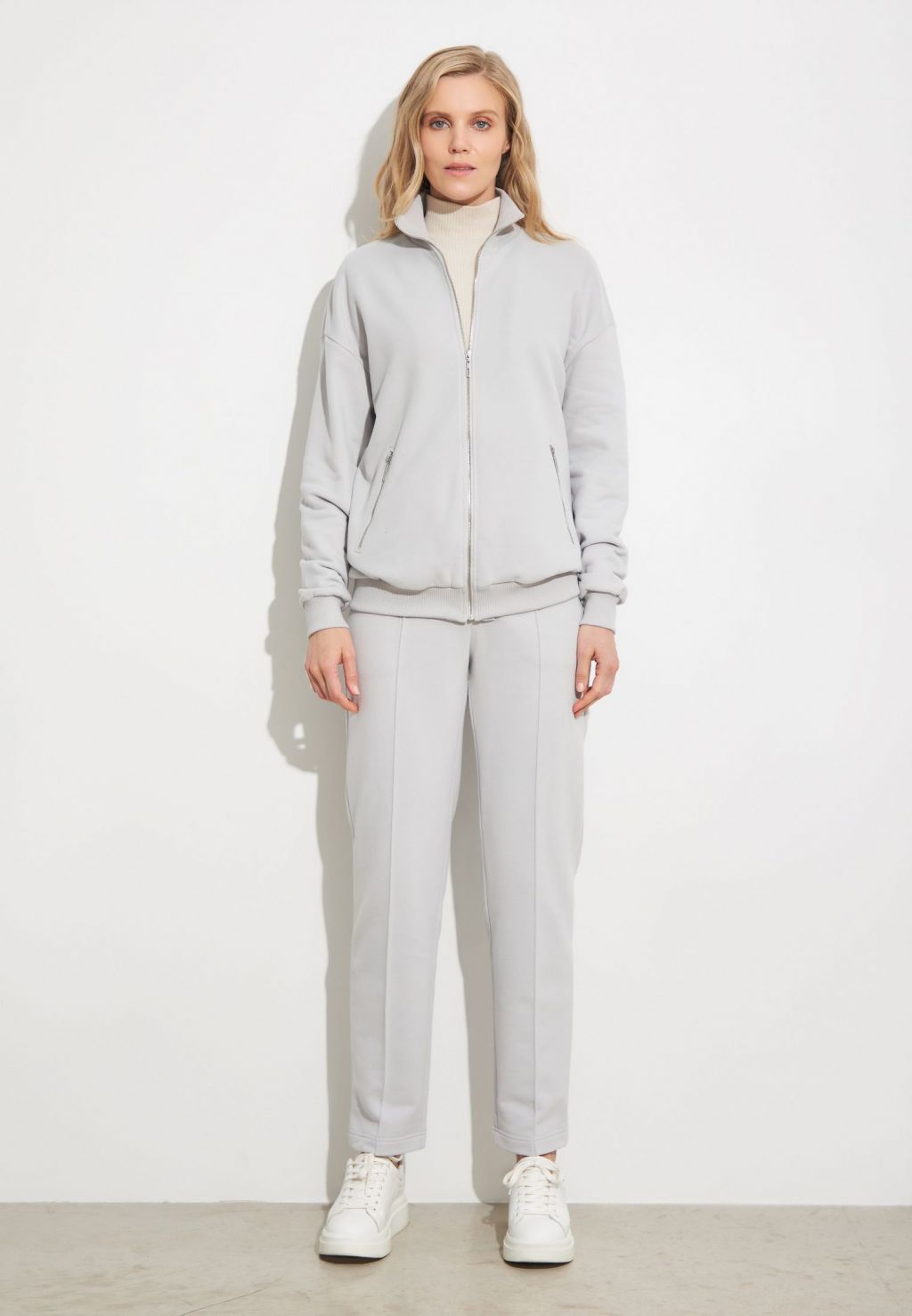 Бомбер свободного кроя отлично впишется в повседневный гардероб и станет любимой вещью для создания неформальных и расслабленных образов. Изделие выполнено из футера 3-х нитки с велюровым эффектом, что делает его приятным на ощупь и комфортным в носке. Для создания монохромного образа сочетайте бомбер с брюками из комплекта.