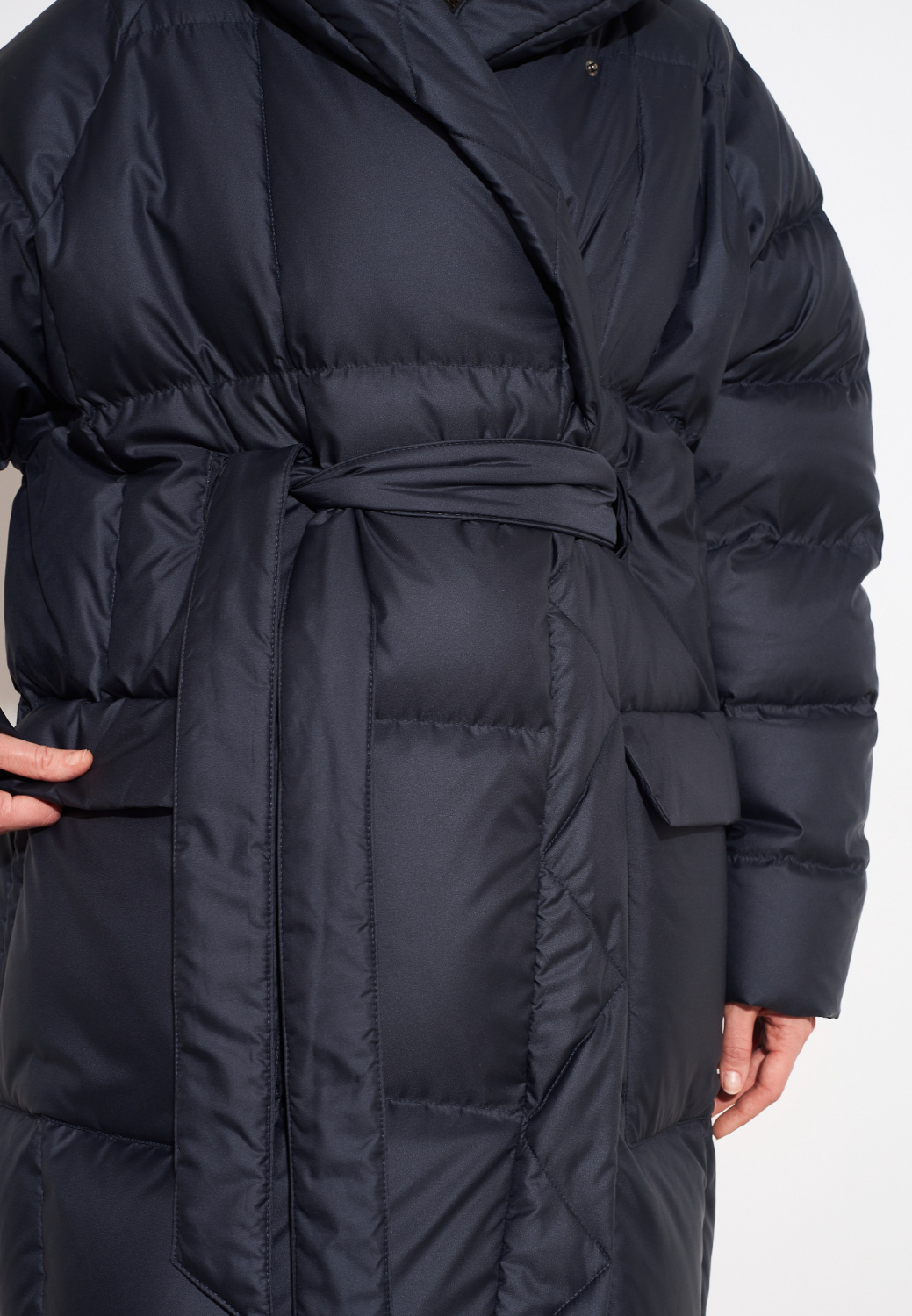 Базовый пуховик длины миди отлично впишется в повседневный зимний гардероб. Данную модель верхней одежды, плотно набитую гусиным пухом, возможно носить более расслаблено или затянуть съемным поясом для создания приталенного силуэта.